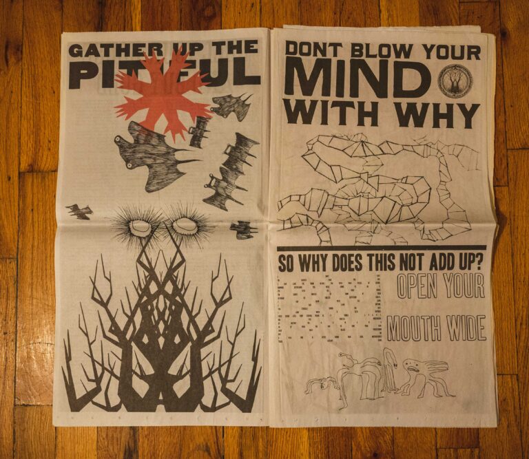 The band even physically encapsulated that very same fleeting, transient vibe of the music in the physical vinyl release. Dubbed the “Newspaper Edition,” the album was first teased with a newspaper handed out on the streets of NYC and the UK titled The Universal Sigh, that featured collages of poetry, short stories, and visual art. The vinyl itself came with another newspaper style art book, a 625-tab sheet of blotter paper, and two clear vinyls. Newspaper was chosen because of how it predictably yellows and fades over time; coming back to the whole notion of capturing an elusive futuristic sound before it fades into memory.