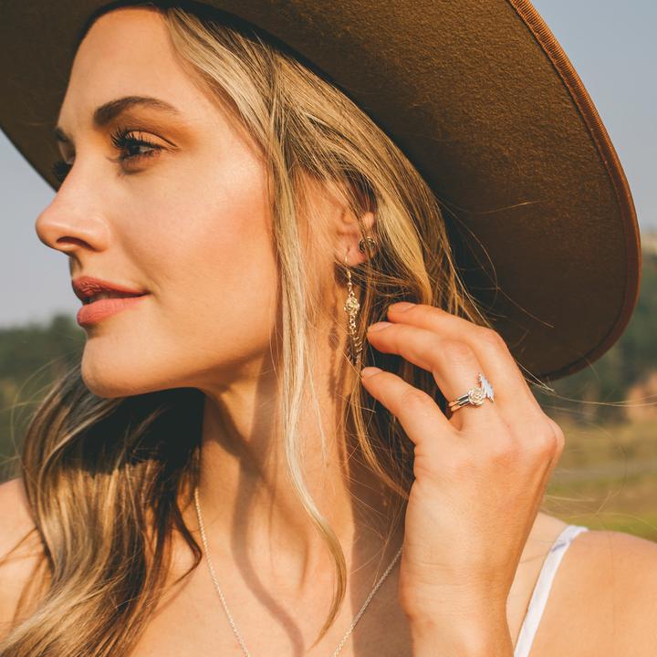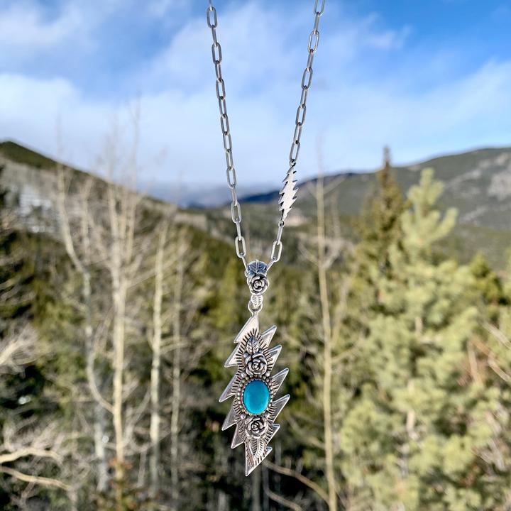 The Rose & Bolt collection features handmade rings, necklaces, bracelets and earrings, all featuring roses and the classic 13-point lightning bolt. Elegant, delicate styles come in sterling silver, rose gold, and 16k yellow gold. Bolder, statement styles feature turquoise stones and quartz crystals.