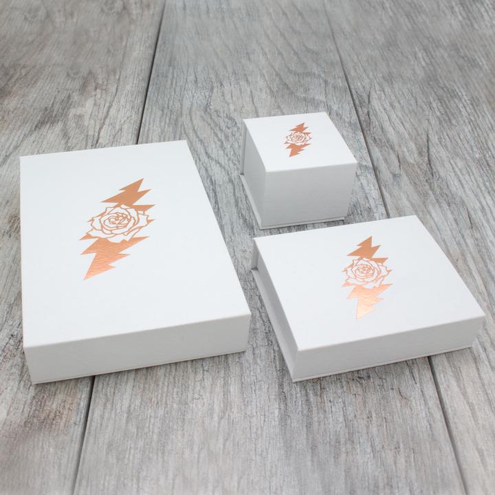 Rose & Bolt Jewelry is sure to attract fans of all ages. Each piece comes in beautiful, collectors boxes and microsuede drawstring pouches. Classic styles can go from day to night, office to dance floor, from formal events to Zoom parties. Rose & Bolt jewelry will prove to be coveted pieces in any Deadhead’s collection.